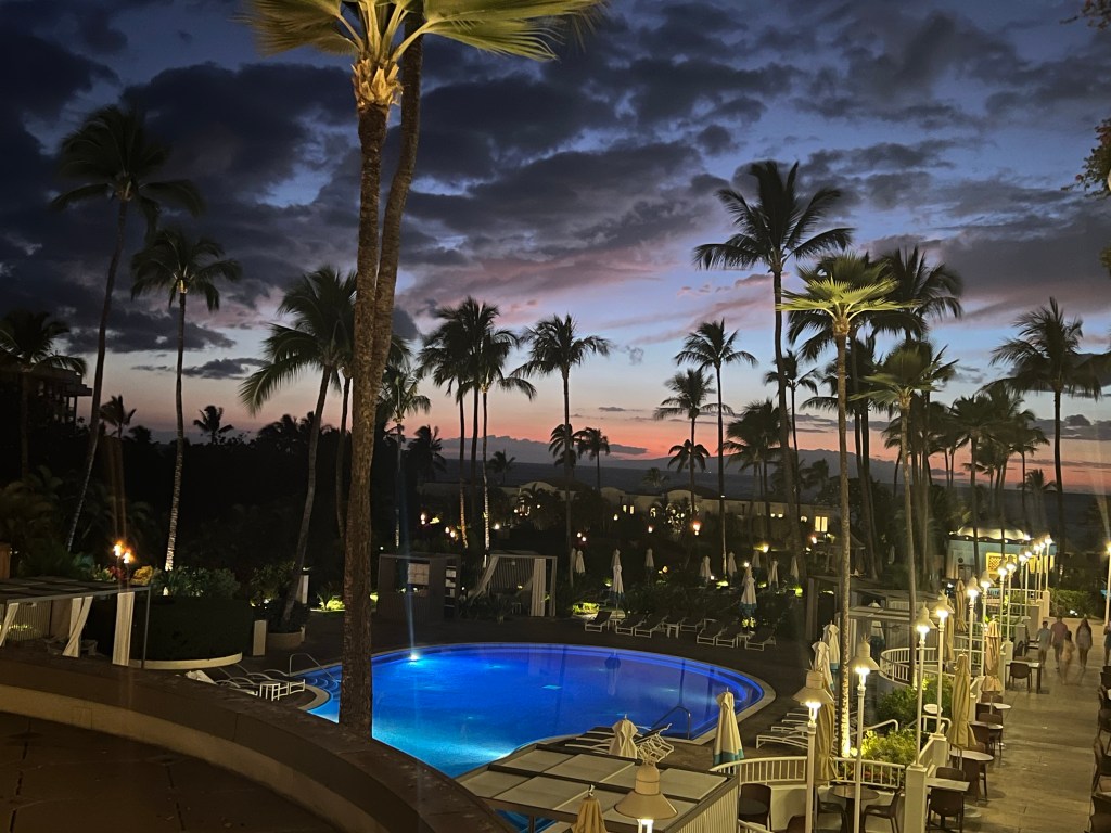 When you pull up you are greeted with some beautiful leis. The open-air lobby looks over the breathtaking property. The hotel is on a hill so the lobby is much higher than the beach. The lobby is even higher than the gift shop and restaurants. There was quite a bit of climbing and elevator riding in this hotel. This is not a complaint at all, but if stairs and hills are something you avoid, this isn’t the hotel for you.